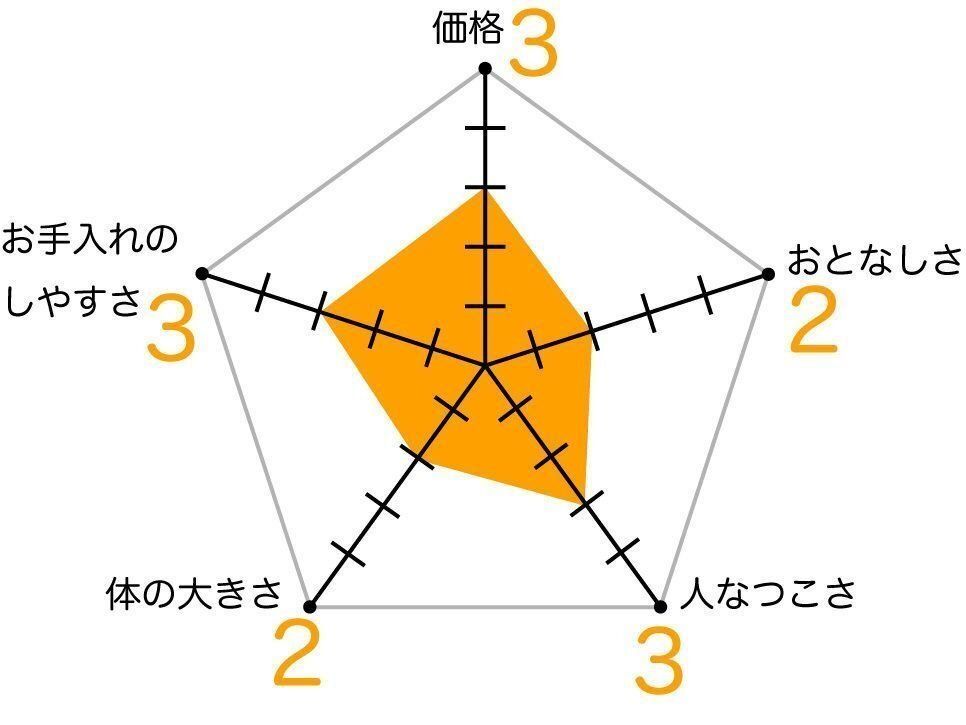 ソマリの飼いやすさ 各項目の数値が大きいほど飼いやすい傾向