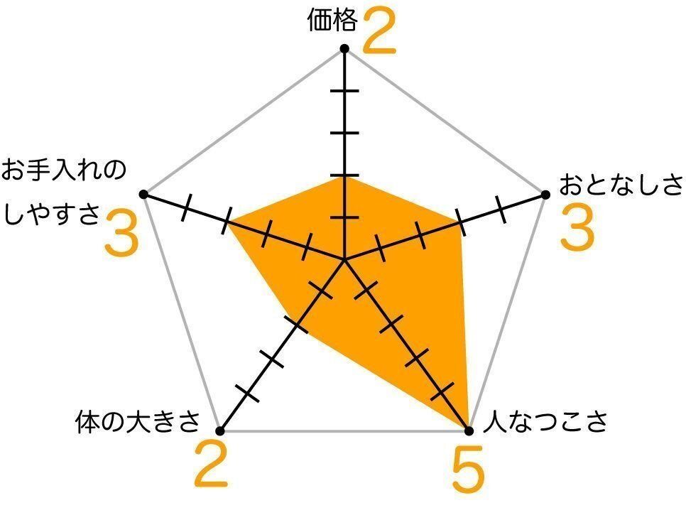 サイアミーズ(シャム猫)の飼いやすさ 各項目の数値が大きいほど飼いやすい傾向