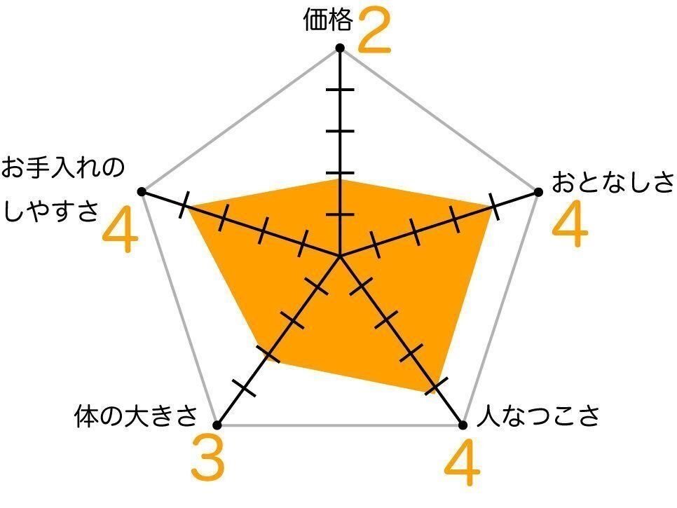 オシキャットの飼いやすさ 各項目の数値が大きいほど飼いやすい傾向