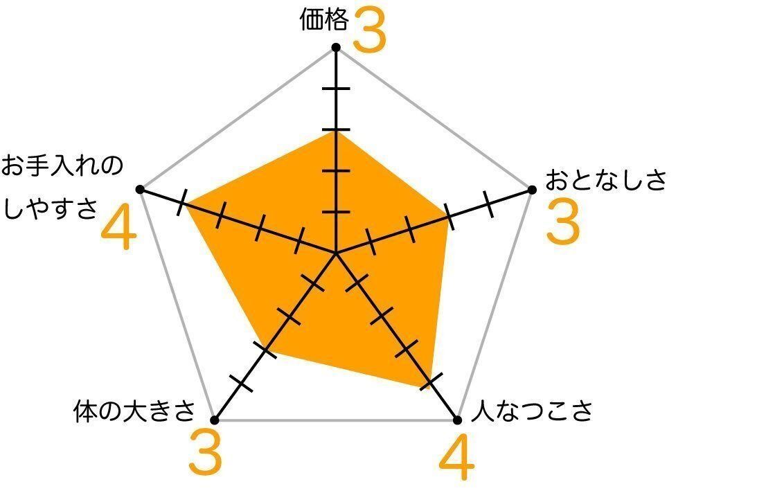 エジプシャン・マウの飼いやすさ 各項目の数値が大きいほど飼いやすい傾向