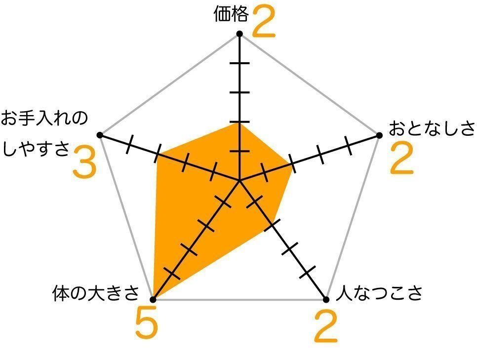 ベンガルの飼いやすさ 各項目の数値が大きいほど飼いやすい傾向