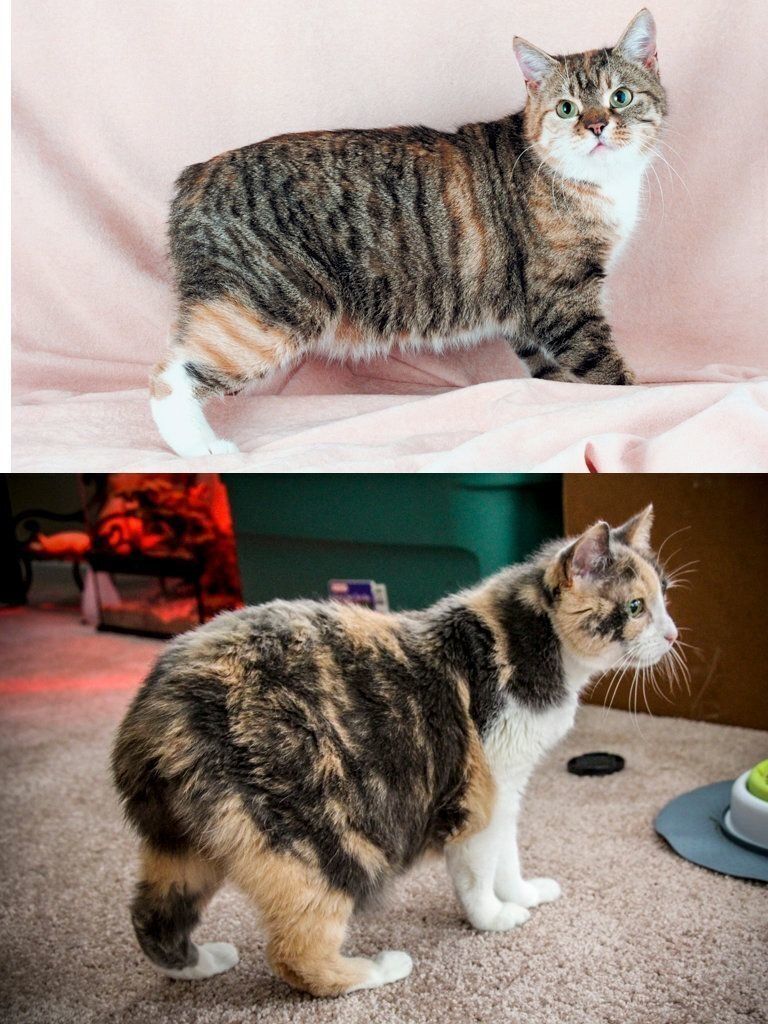 イギリスで人気となったマンクスは、19世紀の終わり頃からアメリカに輸入されます。当時のマンクスは、今とは違って体も足も長く、すらりとした体型でしたが、アメリカのブリーダーたちによって、丸くずんぐりとした今の形に改良されました。