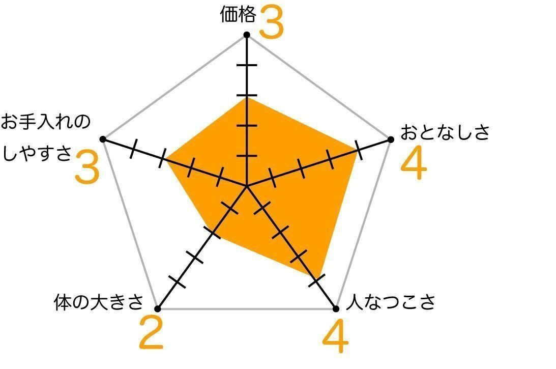 マンクスの飼いやすさ 各項目の数値が大きいほど飼いやすい傾向
