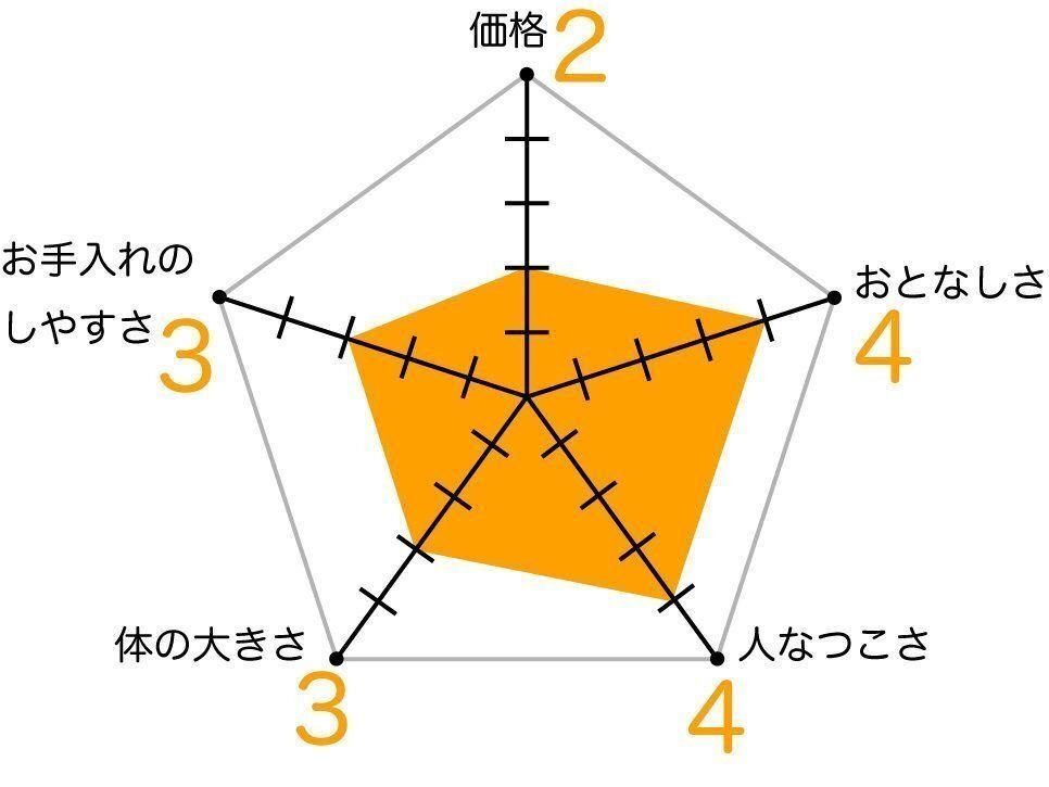 アメリカンワイヤーヘアの飼いやすさ 各項目の数値が大きいほど飼いやすい傾向
