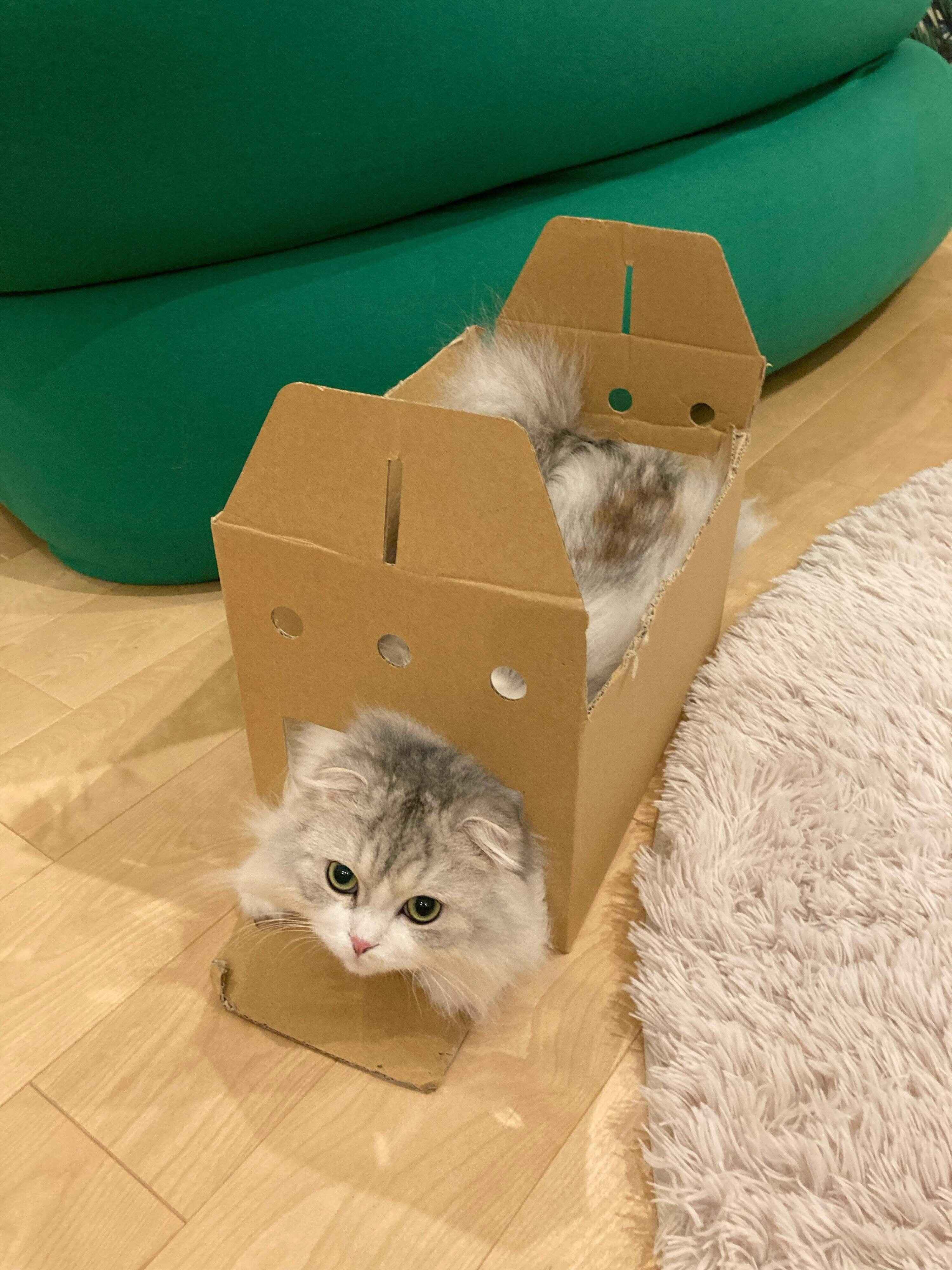 そんな2匹ために、飼い主さんが段ボール箱を使って遊び場を作りました。