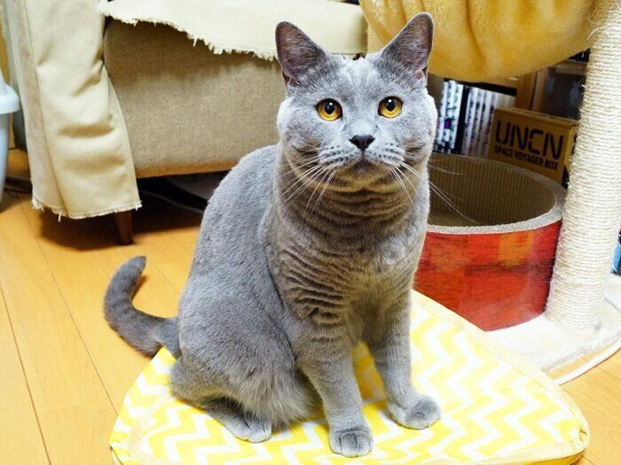 我が家初の単色!シャルトリューの男のコ。まだまだ子猫ちゃん…と思っていたら、うにやもーちゃんに追い付け追い越せの大きな猫に!何事にも動じないおだやかボーイです♪