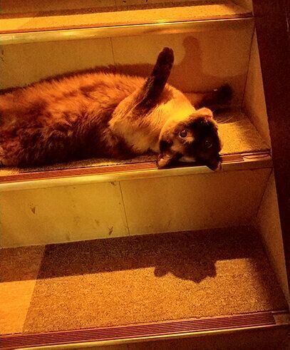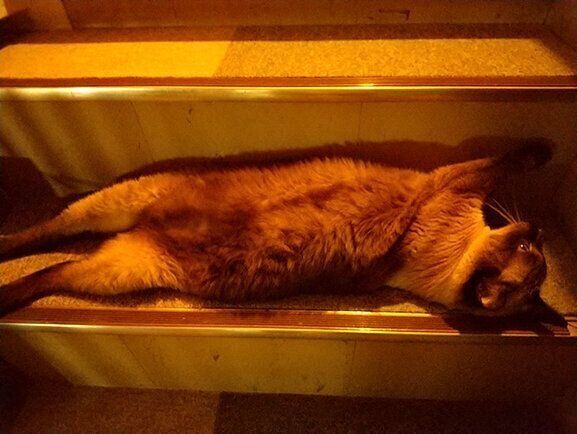 猫が階段と同化する夜。ぜっっったいに動かない猫と、動じない家族【連載】ねこ連れ草 191話め