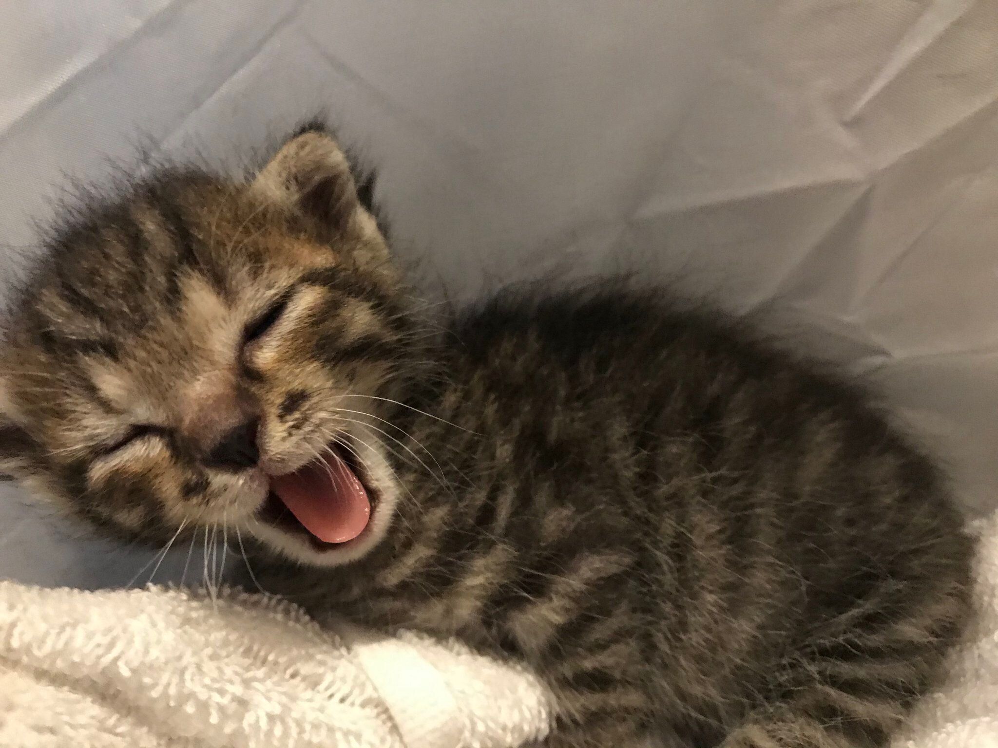 「仕事を終えて外に出ると、鳥の鳴き声のような、なにか機械音のような…よくわからない音が聞こえてきたんです。聞いているうちに『まさか猫じゃないよな』と思い声を辿ってみると、狭いダクトのようなところに子猫がいるのを発見しました。