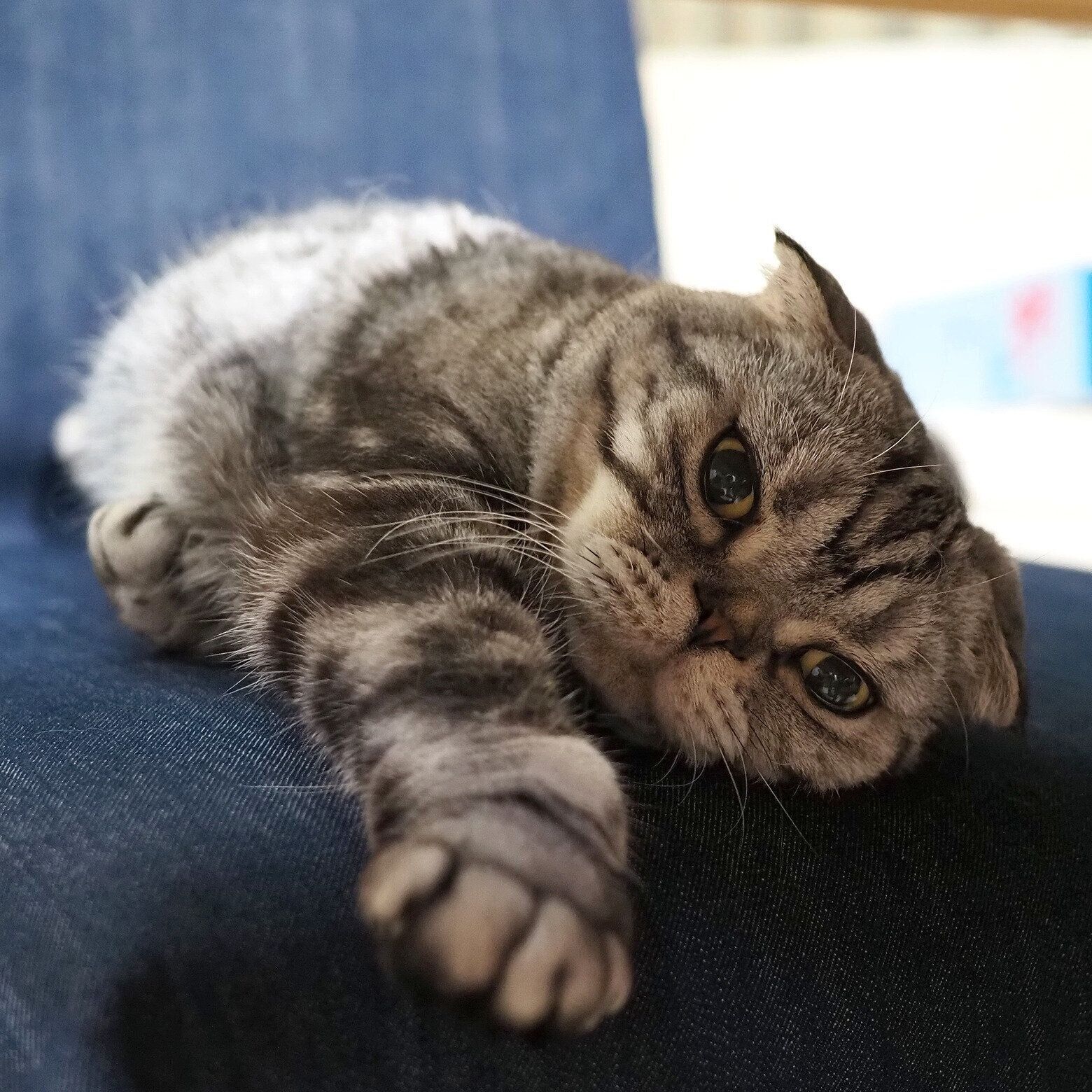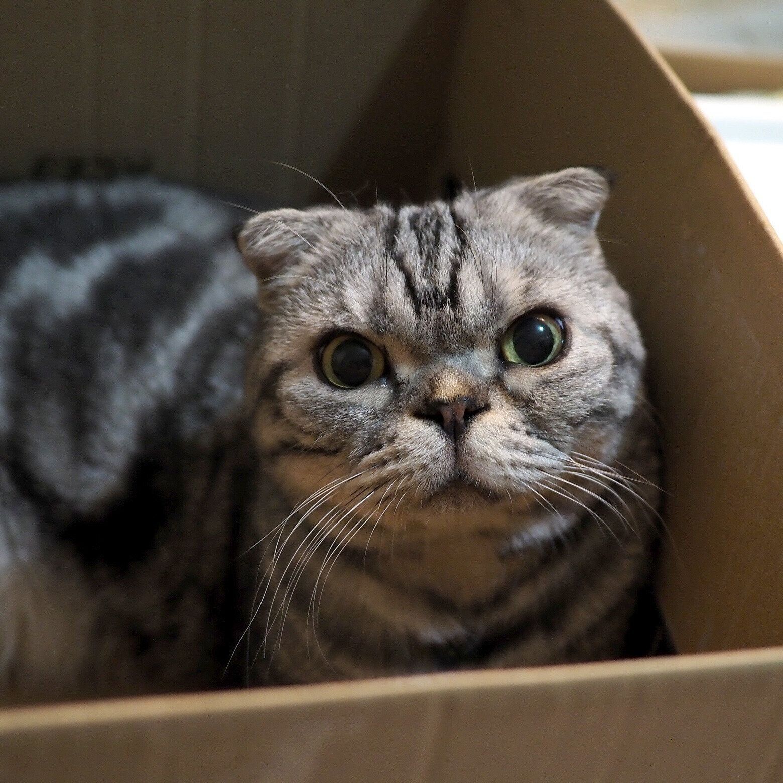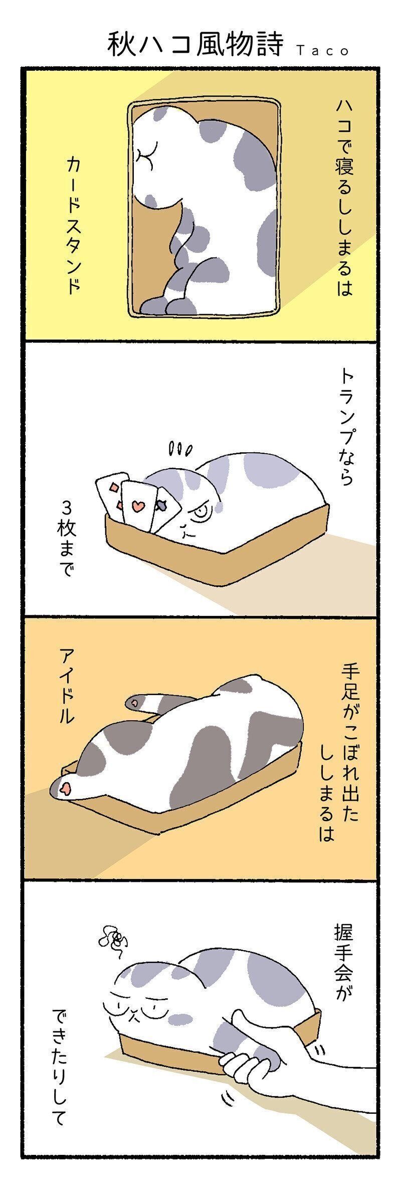 箱から出たししまるは、伸びながら私の膝へと登ってきました。肌寒くなった季節の恩恵です。ありがとう、秋…。そしてありがとう、ししまる…。
