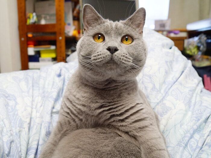 我が家初の単色!シャルトリューの男のコ。まだまだ子猫ちゃん…と思っていたら、うにやもーちゃんに追い付け追い越せの大きな猫に!何事にも動じないおだやかボーイです♪