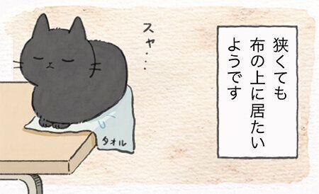 そのギリギリの狭さは快適なの?意地でも布の上に居座りたい猫【連載】ねこ連れ草 197話め