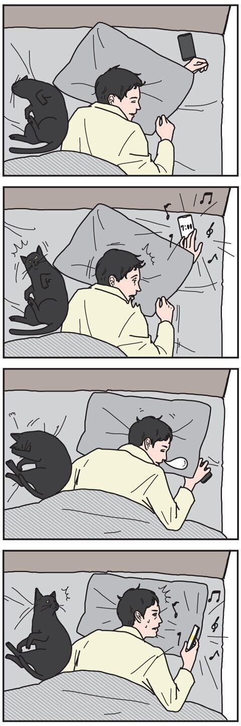 猫も人も、スヌーズ機能で起こされる【男の猫道】ねこのきもちWEB MAGAZINE限定話 vol.107