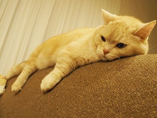 リビングにやってきてソファで寛ぐぷーちゃん。