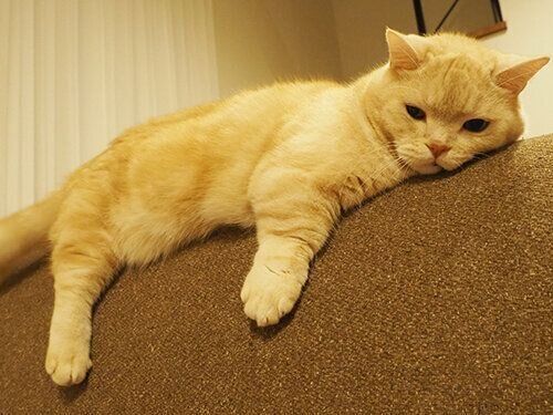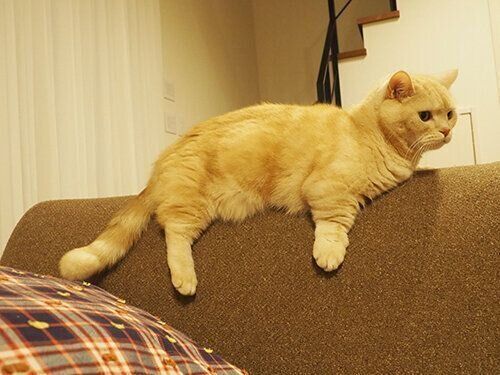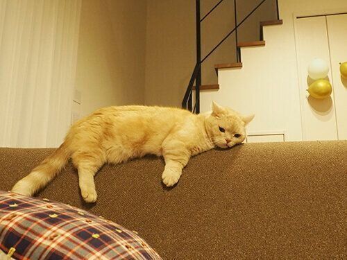 ギリギリなバランス!? レアな垂れ姿のぷーちゃん【連載】マンチカンのぷーちゃん#174