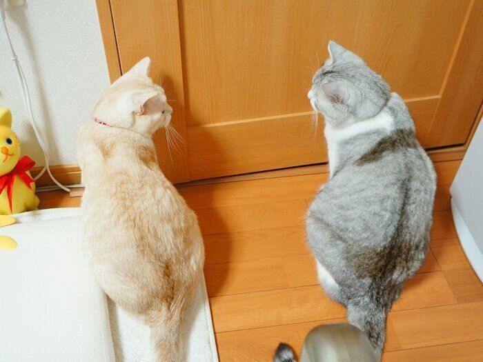 そういえばうにともーちゃんも昔、お互いがお風呂に入れられているときにお互いのことを心配して、お風呂場の前でウロウロしたり、『大丈夫かー!』と鳴いたりしていたなぁ。