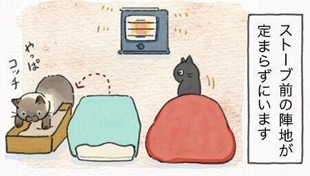 ストーブシーズン到来!今年もはじまった陣取り合戦…のはずが?【連載】ねこ連れ草 205話め