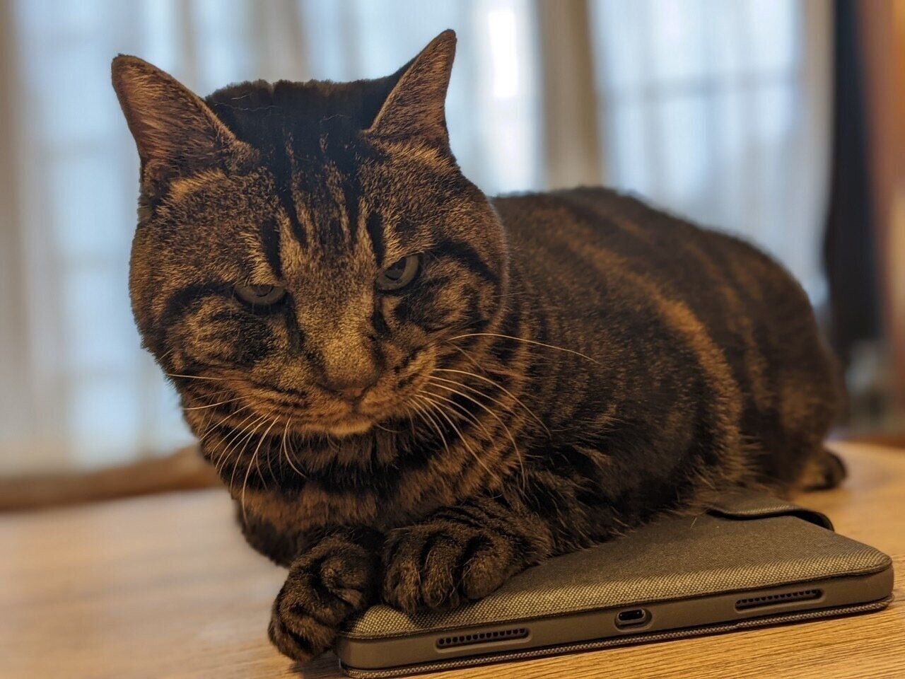どうしてもiPadの上でくつろぎたいたまちゃん