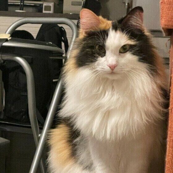 「白い毛色の割合が多いと、黒・オレンジが体のあちこちにブチとなって表れます。そんな柄が飛び飛びの様子から“とびミケ”と呼ぶことも」(石原さん)