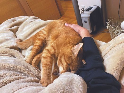 「ラムが膝の上にのっているときは我慢します。こちらの足が痺れてきても、体が動かせず痛くなってきてもひたすら我慢。猫ファーストです。」