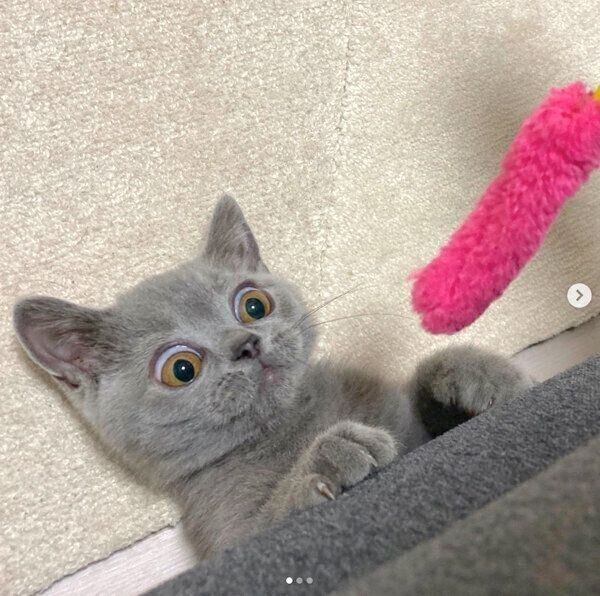 こちらの写真は、トロくんが生後4カ月頃のときのもの。当時のトロくんは、ソファの下に潜って猫じゃらしなどでチョイチョイ遊ぶのが好きだったそうです。目をまんまるにして、真剣に猫じゃらしを狙う様子が愛らしいですね♪