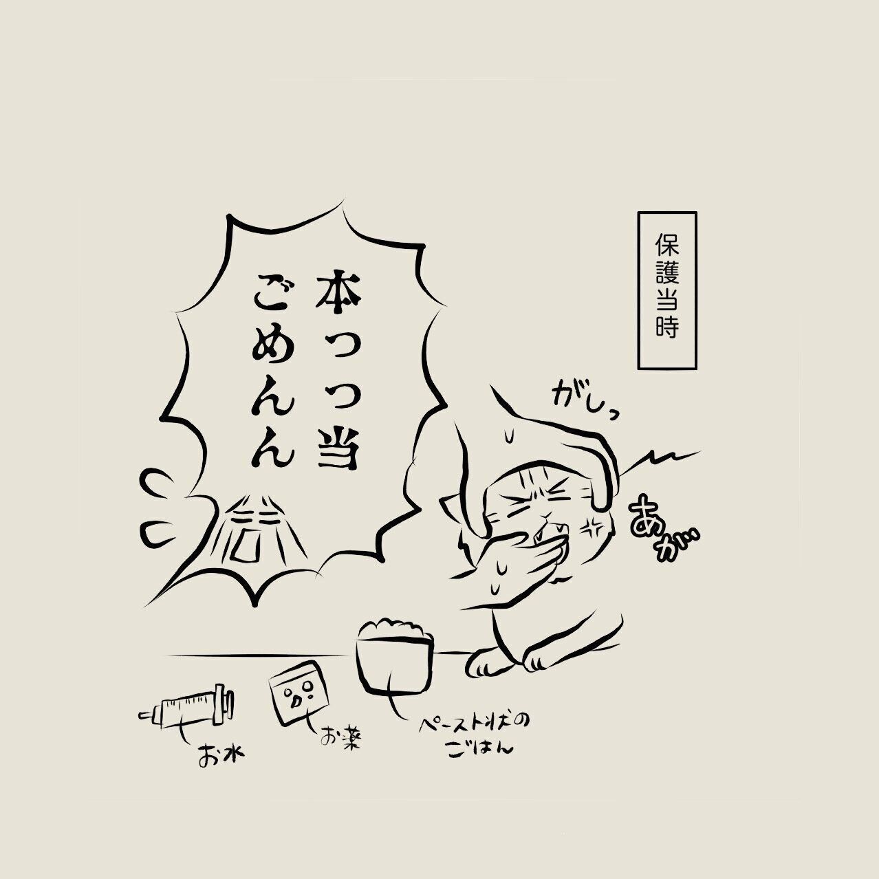 しかし、保護当時は嫌がるたまちゃんを押さえつけ、ご飯や薬を飲み込ませ、お水も無理矢理飲ませていたのです。