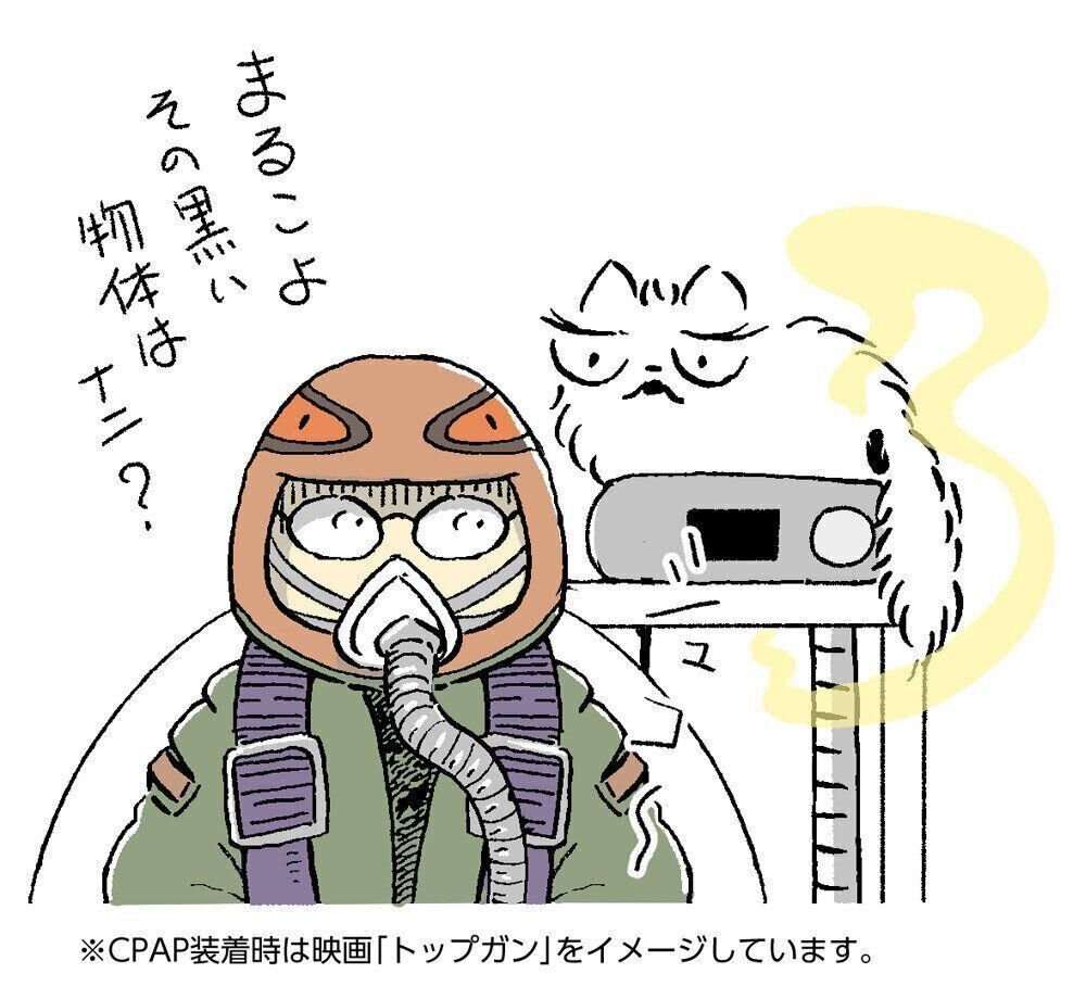 「まるこがトイレ(大)でもしたのかな?」とも思いましたが、常にCPAPから送られてくる異臭が異常にフレッシュなのです。おそるおそる棚の上のまるこを見ると、まるこは背伸びしてからくるりと回り、お尻についた黒いぷらぷらを僕に見せてくれました。