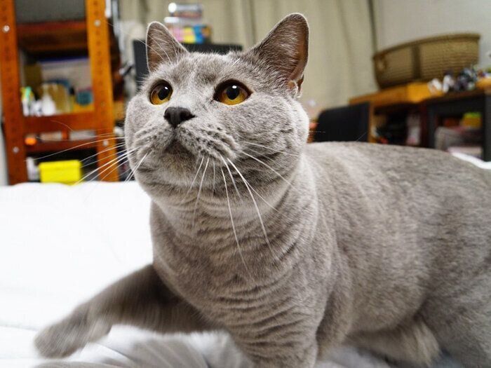 我が家初の単色!シャルトリューの男のコ。まだまだ子猫ちゃん…と思っていたら、うにやもーちゃんに追い付け追い越せの大きな猫に!何事にも動じないおだやかボーイです♪