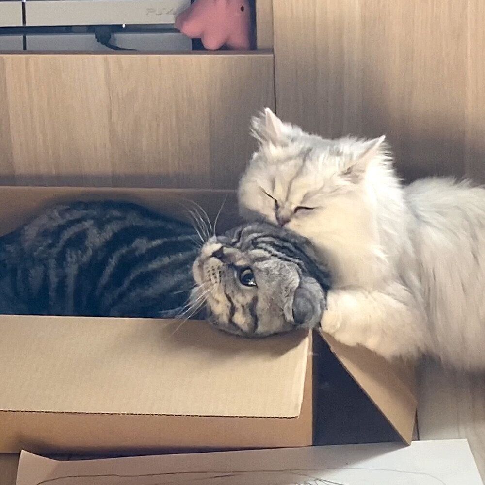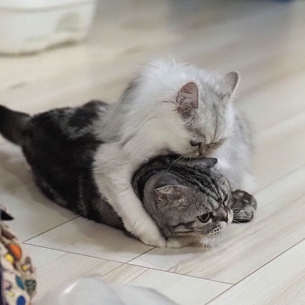 その意味をねこのきもちWEBMAGAZINEで調べたところ、猫同士が互いにグルーミング(毛繕い)をし合うことをアログルーミングといい、“仲間の猫に行う愛情表現“だそうです。