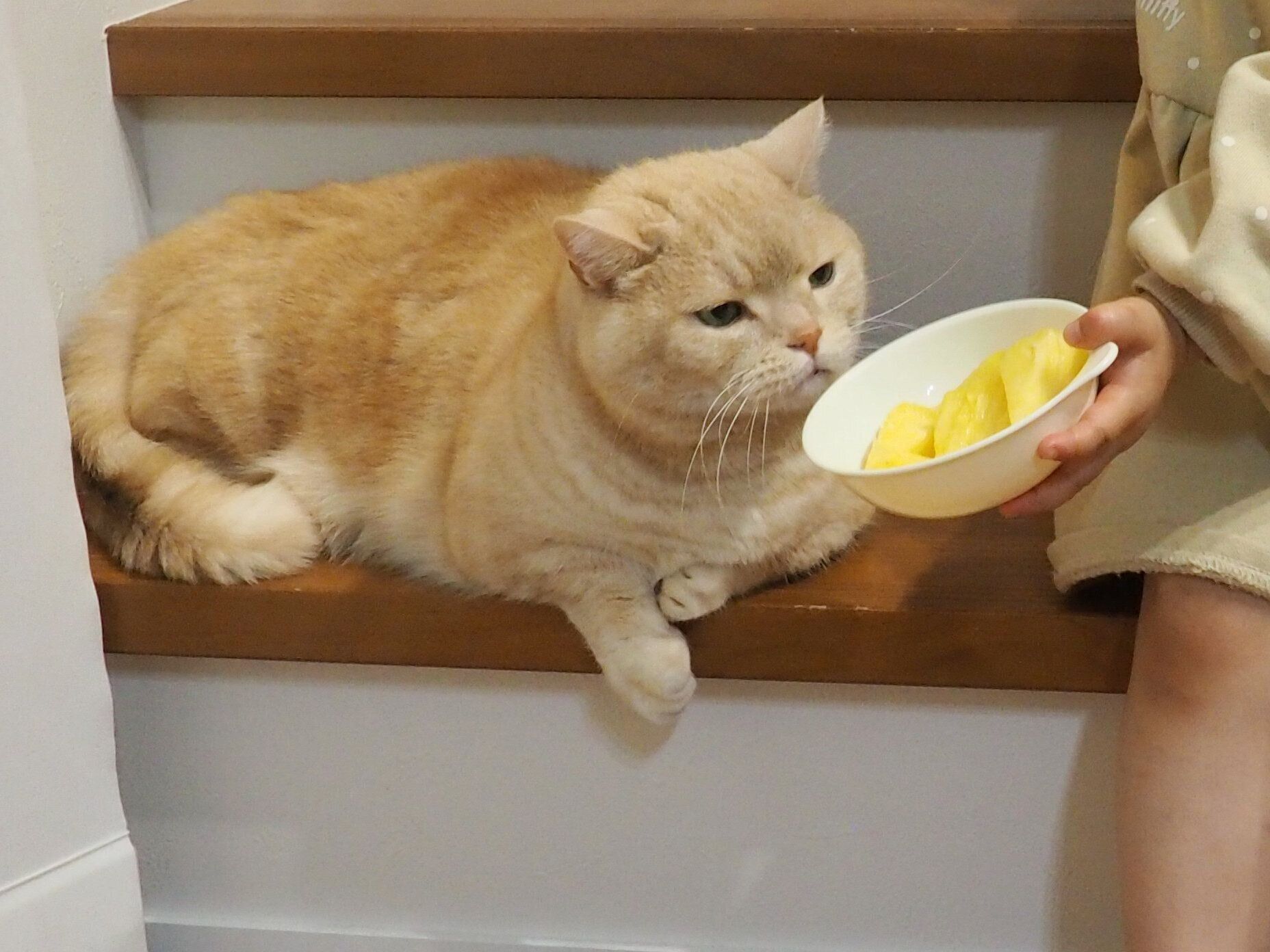 そういえばパイナップルは猫用ウェットフードにも入っているものがあるので、食べても大丈夫みたいです。