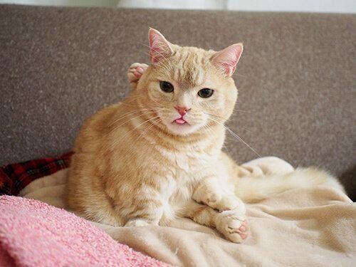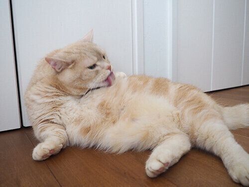 びっくりする体勢でも毛繕いは念入りに【連載】マンチカンのぷーちゃん#201