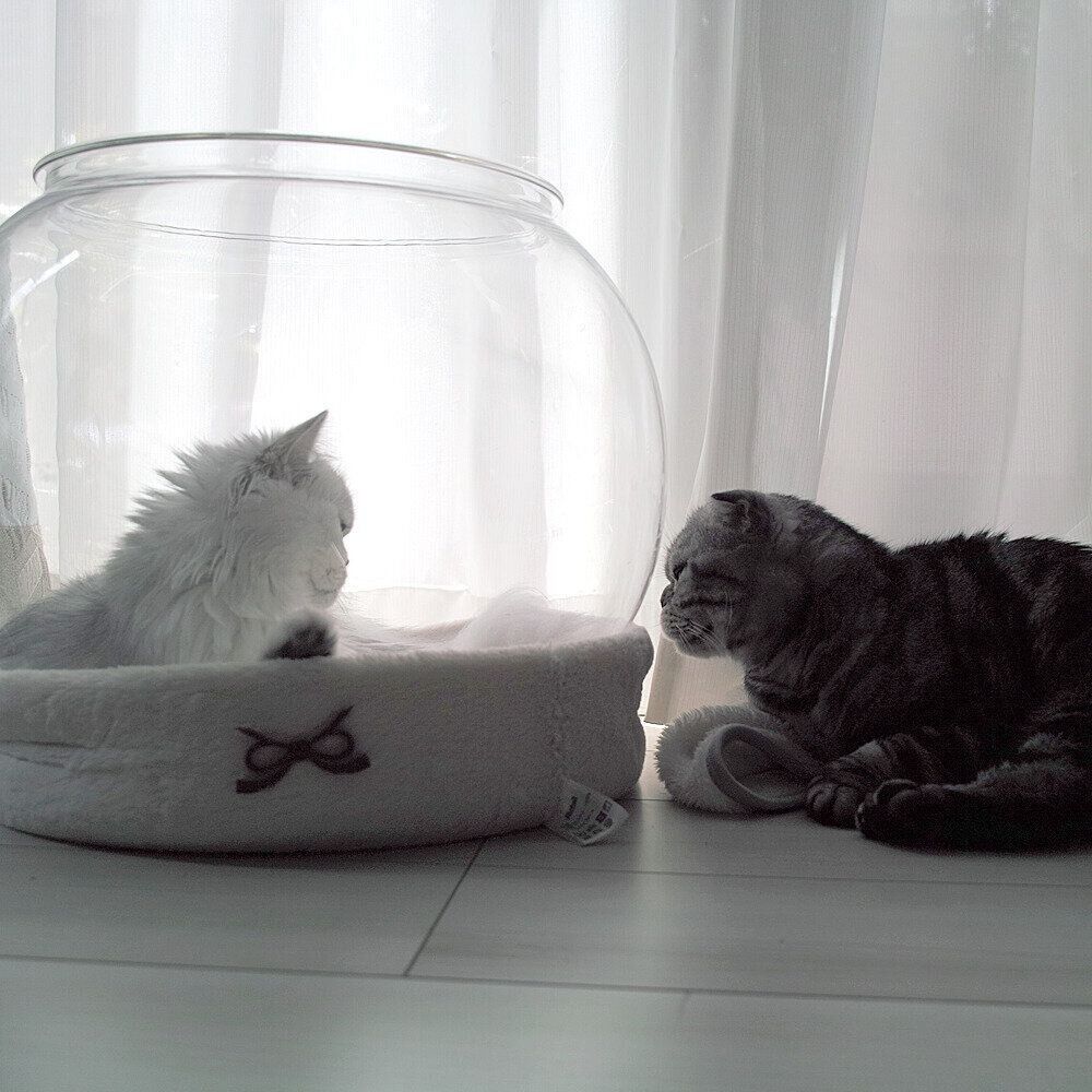 絶対離れないししまると絶対離れるまるこ。似てない二匹ゆえ、お互いの個性が際立っていた。