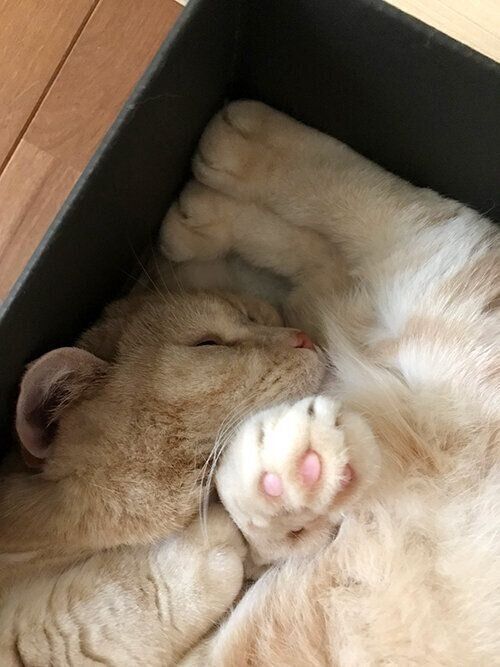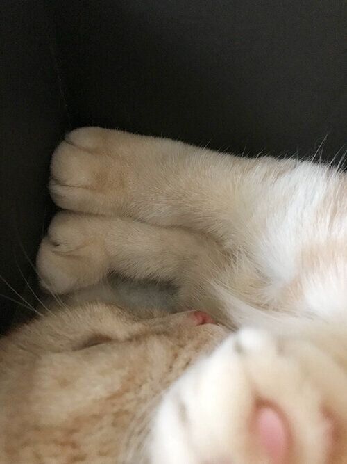 猫のお中元? きっちり収まった可愛い足【連載】マンチカンのぷーちゃん#205