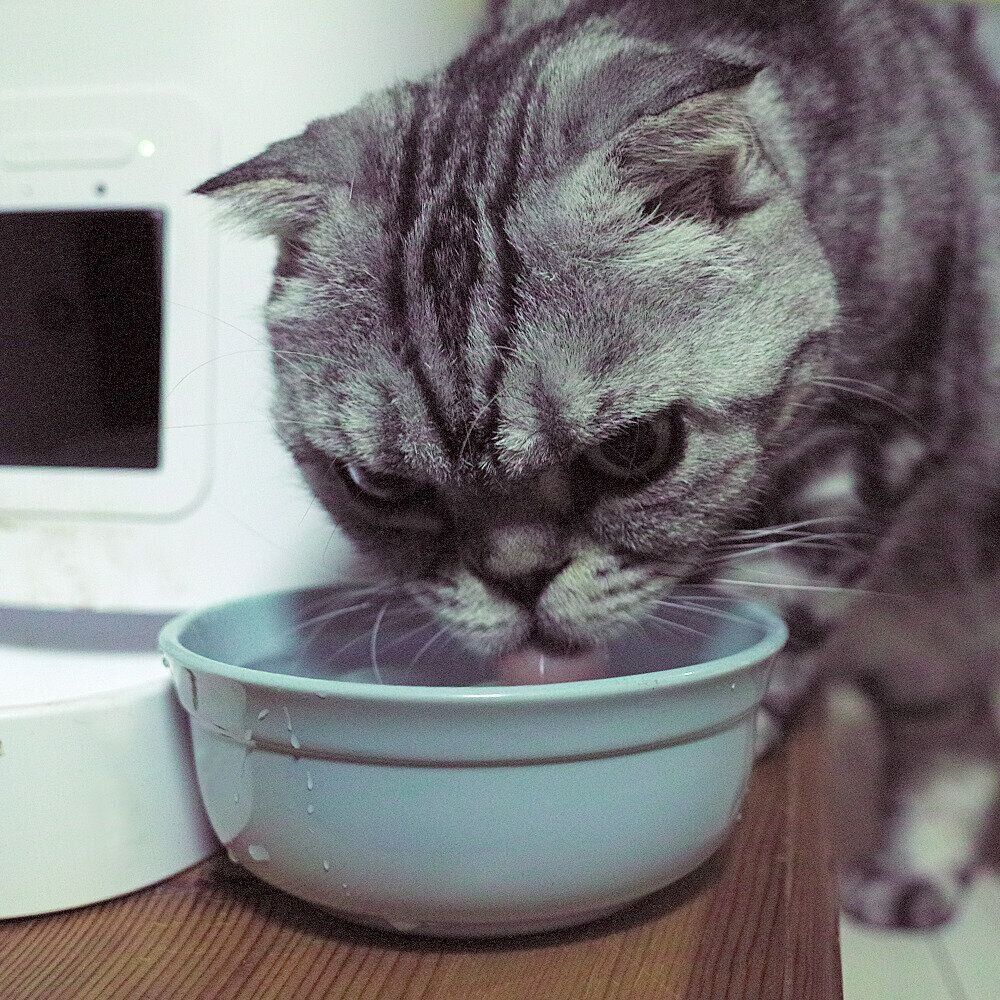 僕が「猫たちが水を飲む音にも個性が現れて面白いなぁ」などと思っていると、突然ししまるは何度もくしゃみをしはじめた。どうやら鼻に水が入ったらしい。