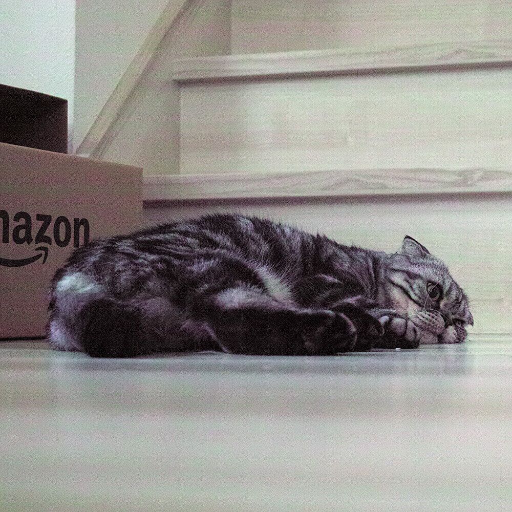 深夜に響く落下音。それを追うように、ズドッと大きな音が鳴った。驚いたししまるが箱から転げ落ちたのだ。