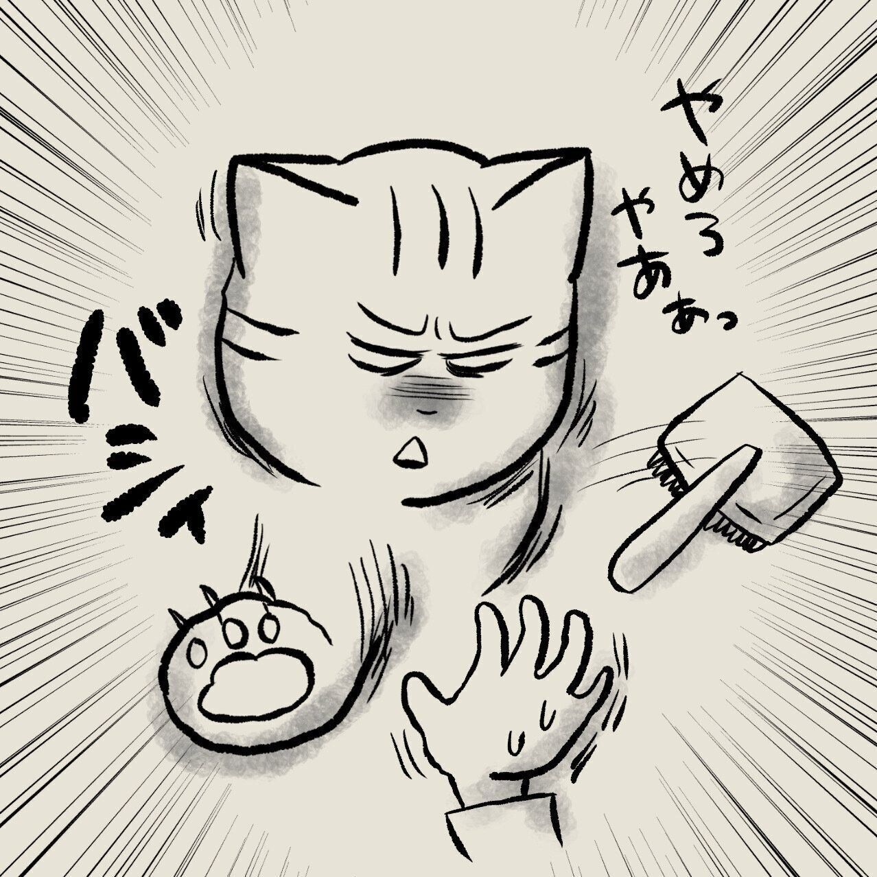 そんなぁぁぁ!!足でブラシを断固拒否。