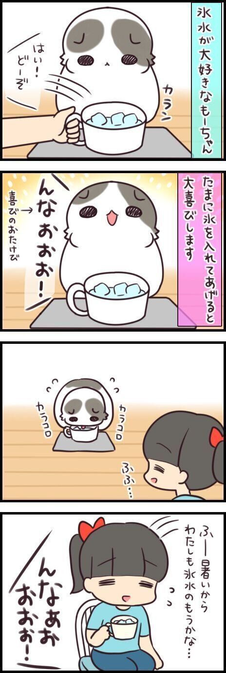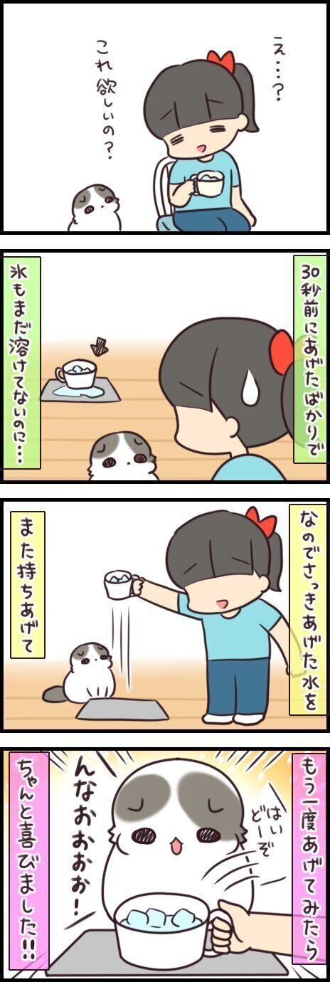氷水をあげるといつも喜びの雄叫びをあげるんですが、すご〜〜〜く静かに来た😂