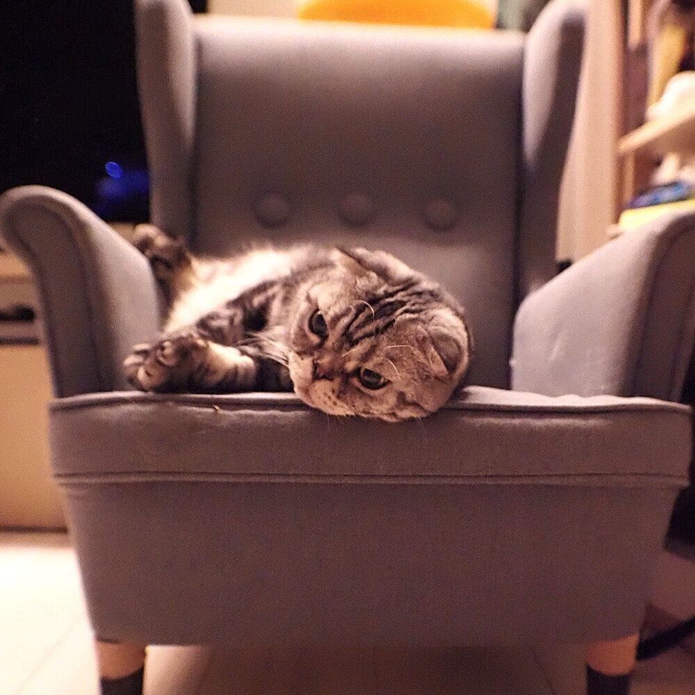 「猫だらけチェア」とお別れ。最後の最後までみんなのお気に入りだったアームチェアのお話【連載】渋ネコししまるさん#173
