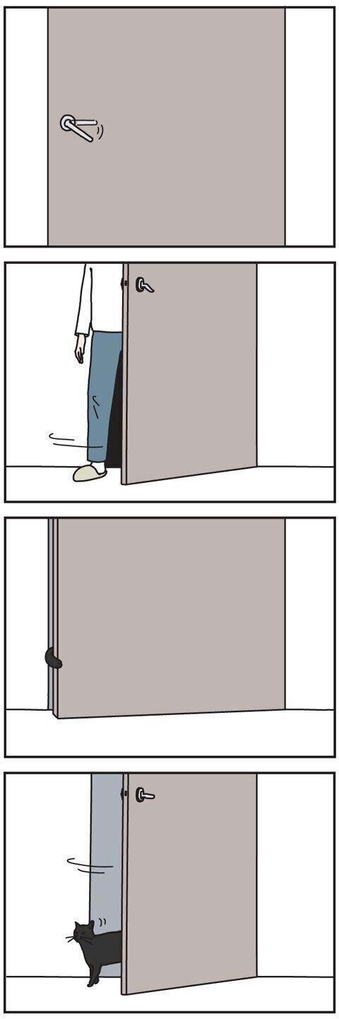 どれも可愛いですが、うちの猫は、ドアの隙間に前脚をチョチョイと差し込み、まるで人がドアを開けるようにしれっとした顔でドアを開けています。