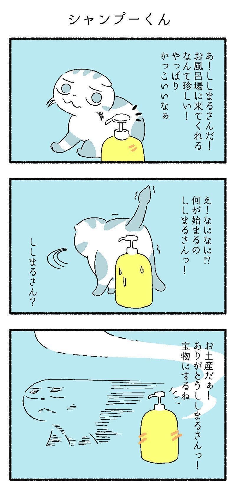 ししまるは立派なモノを出し切った。驚かせた僕への仕返しかもしれない。ししまるは、様子を見に来た妻が開けた扉のすき間から、すっきりした顔でするりと出て行った。