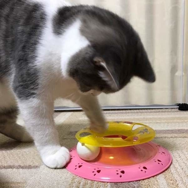 スコティッシュホールドのタム君は、おもちゃのボールの部分を【ちょいちょい】していますね。新しく買ってもらったおもちゃなんでしょうか?