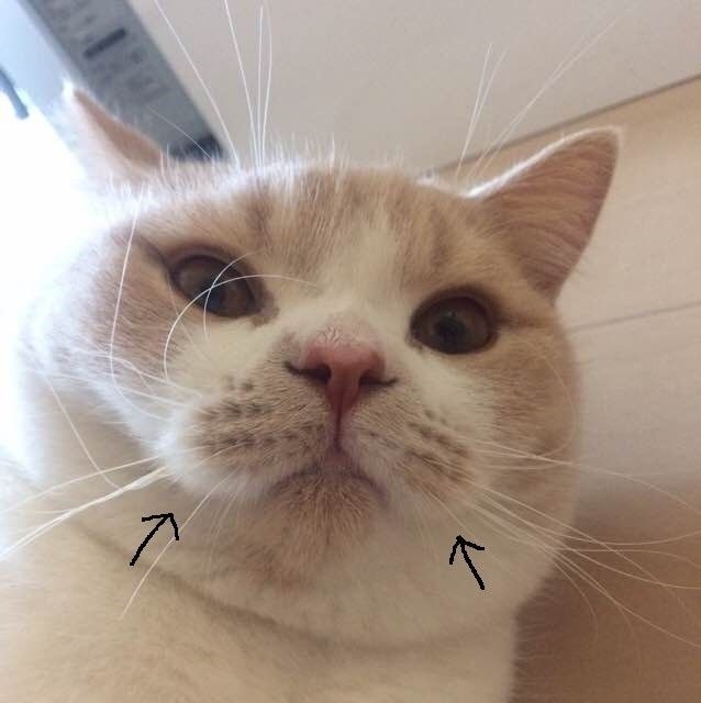 そのときヒゲが前向きになり、ヒゲを動かす筋肉が収縮するので、ぷくっと盛り上がることがあります。
