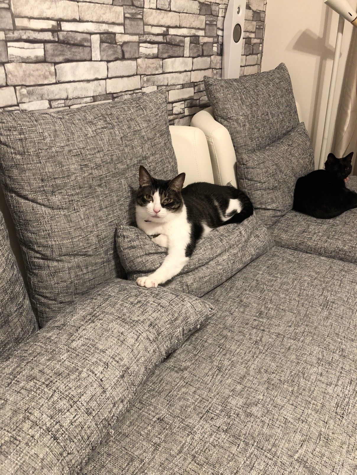 ソファをつなぎとめているだけでは飽き足らず、クッションの整理までしていたのか……
