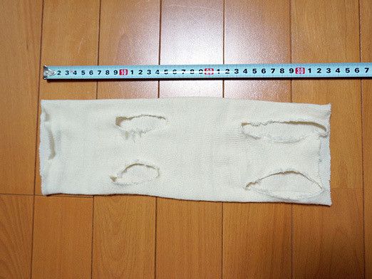 作ったといっても、筒状に切ったタイツに足が出る穴を4つ開けただけですので、