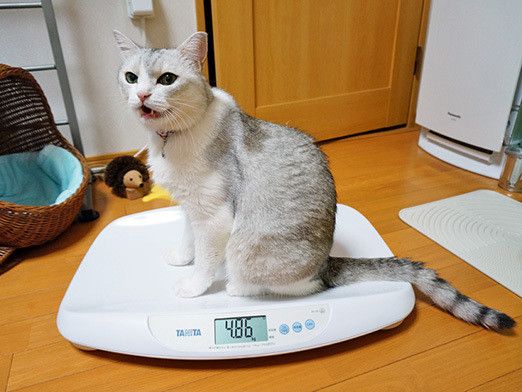 人間用の体重計は50g単位ではかる物が多いのですが、体重4〜5㎏の猫では50gの差はかなり大きい!
