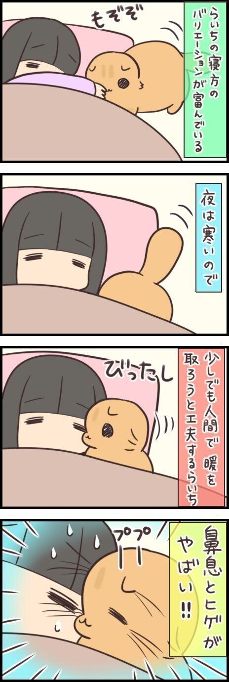 お布団をらいちが入れるように開けてあげれないと首巻き風になる確率が高くなります。