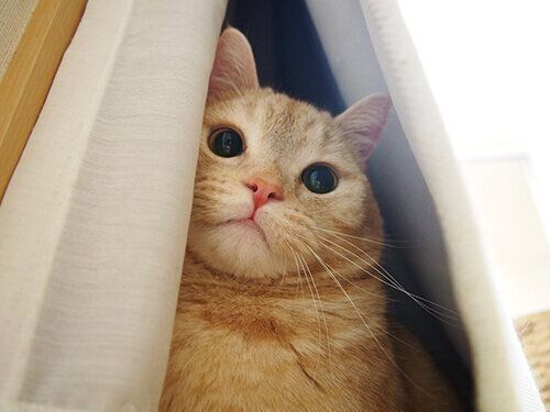 見つけると物陰で暗いせいか、まん丸の目で飼い主を見つめてきます。