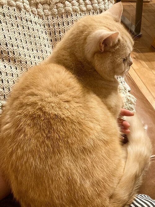 4.●●kgのぷーちゃんの全体重が腕にのしかかります。