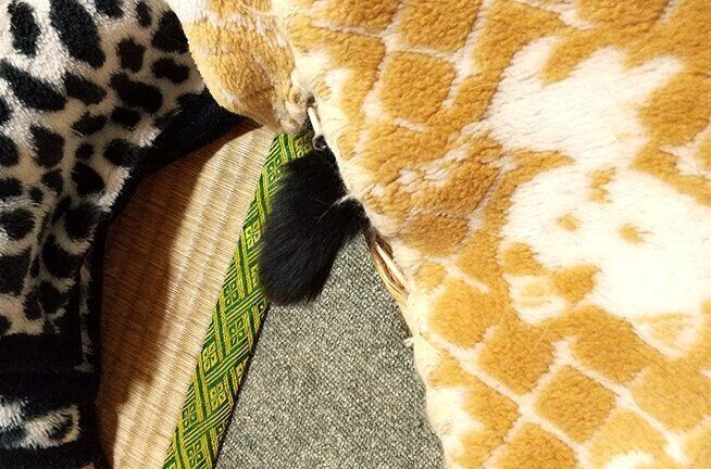 でも毛布の隙間から出てたら触りたくなりませんか?私は我慢できてもかんちゃんは止められません。