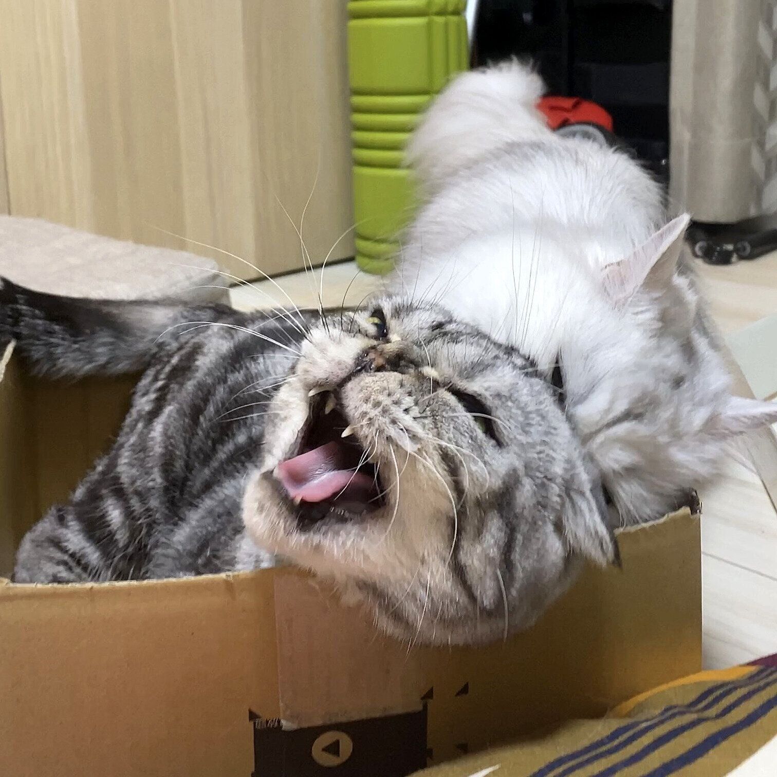 この頃はダンボールでへそ天になるのが好きだったなぁ