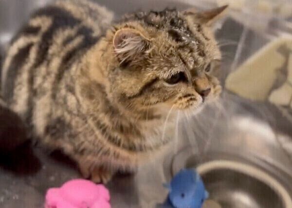そんなチョパえもんくんは、水遊びが大好きだといい、子猫時代から“滝行スタイル”の水浴びをして楽しんでいるとのこと。